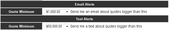 - Sales reps can automatically receive email and text message alerts for quotes